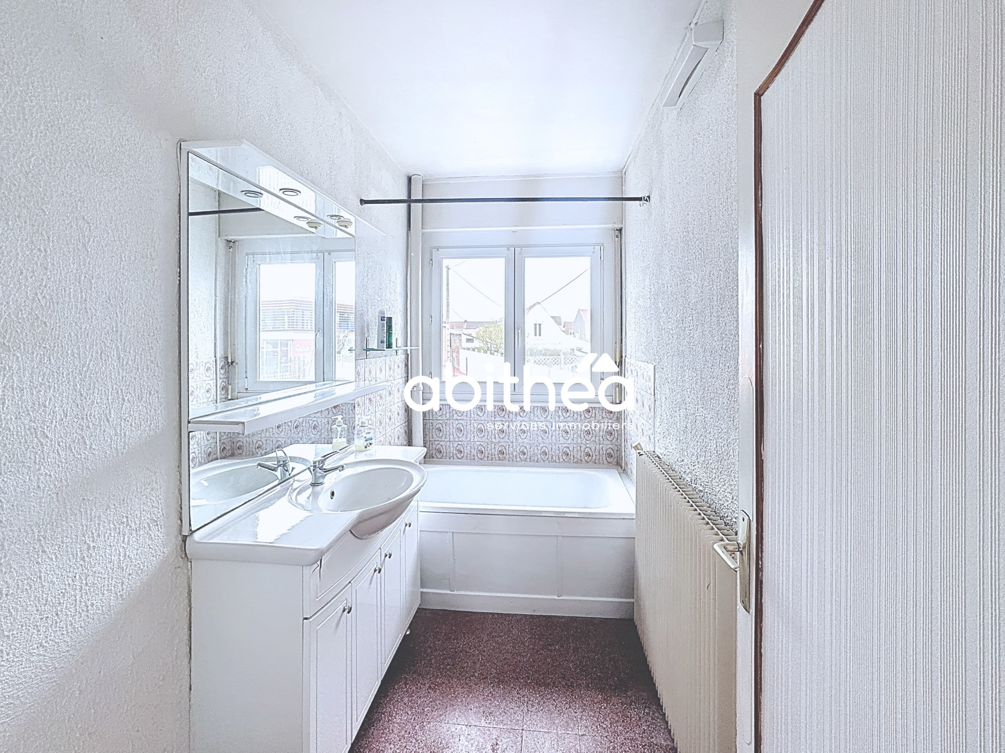 La salle de bain de 4,35 m² comprend une baignoire et un lavabo, tandis que le WC indépendant apporte un confort supplémentaire au quotidien.