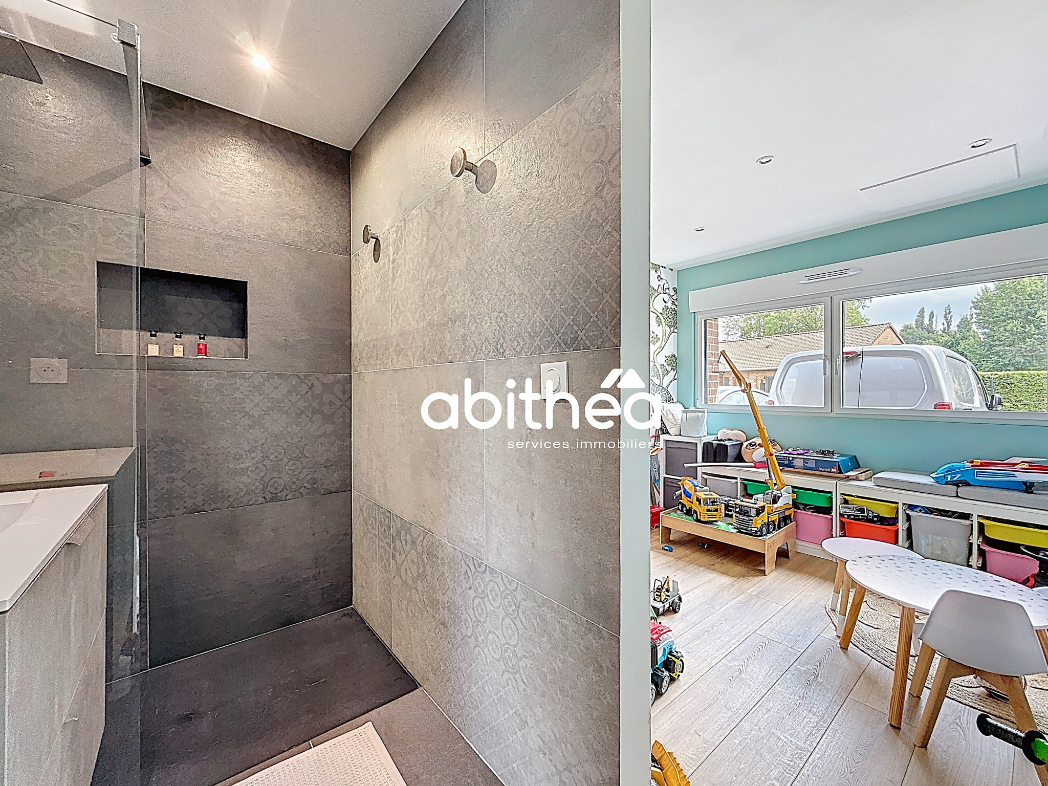 La maison dispose de quatre chambres, dont une située au rez-de-chaussée et utilisée à ce jour en salle de jeu, d'une superficie de 12,92 m2 accompagnée de sa très belle salle d'eau. À l'étage, se trouve une chambre parentale de 17,39 m2 avec grand dressing, et deux chambres d'une surface comprise en 12 et 15 m2 (loi carrez). Une agréable salle de bain moderne de 6,62 m2 complète ce niveau. L'ensemble, répond aux attentes d’une famille en quête de confort et de praticité.