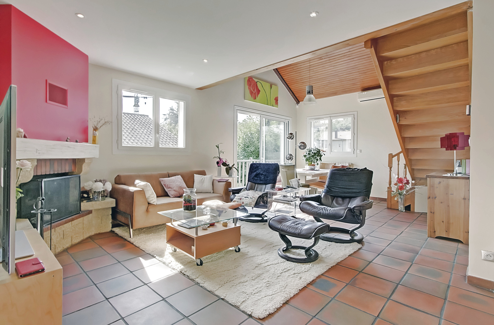 Au niveau 1 se trouve une entrée avec placards, une cuisine fermée aménagée qui ouvre sur une agréable terrasse. Un vaste séjour lumineux avec cheminée et également climatisé donnant sur un balcon. Un bureau, 3 chambres spacieuses, salle de bains avec baignoire d'angle, double vasques, WC et un dégagement avec placards.
