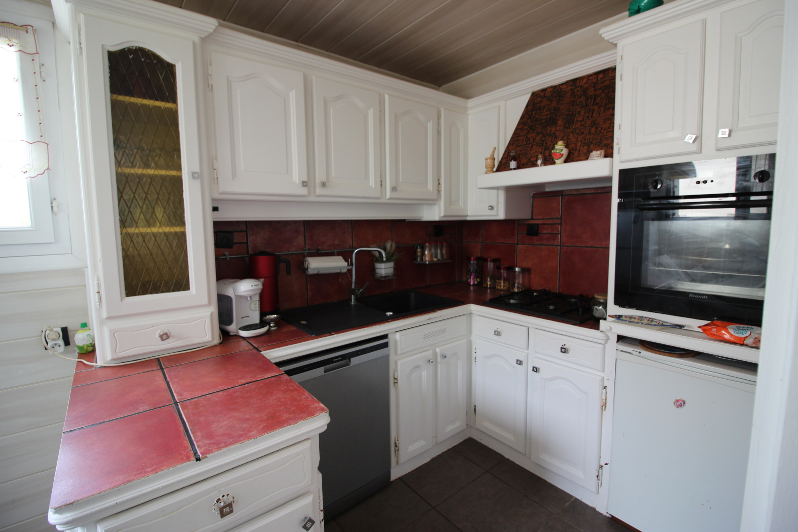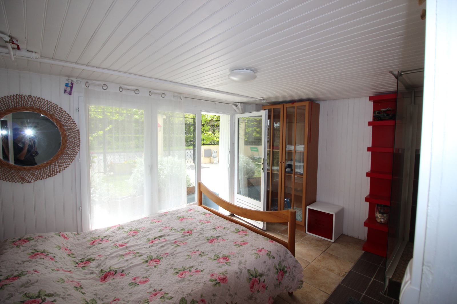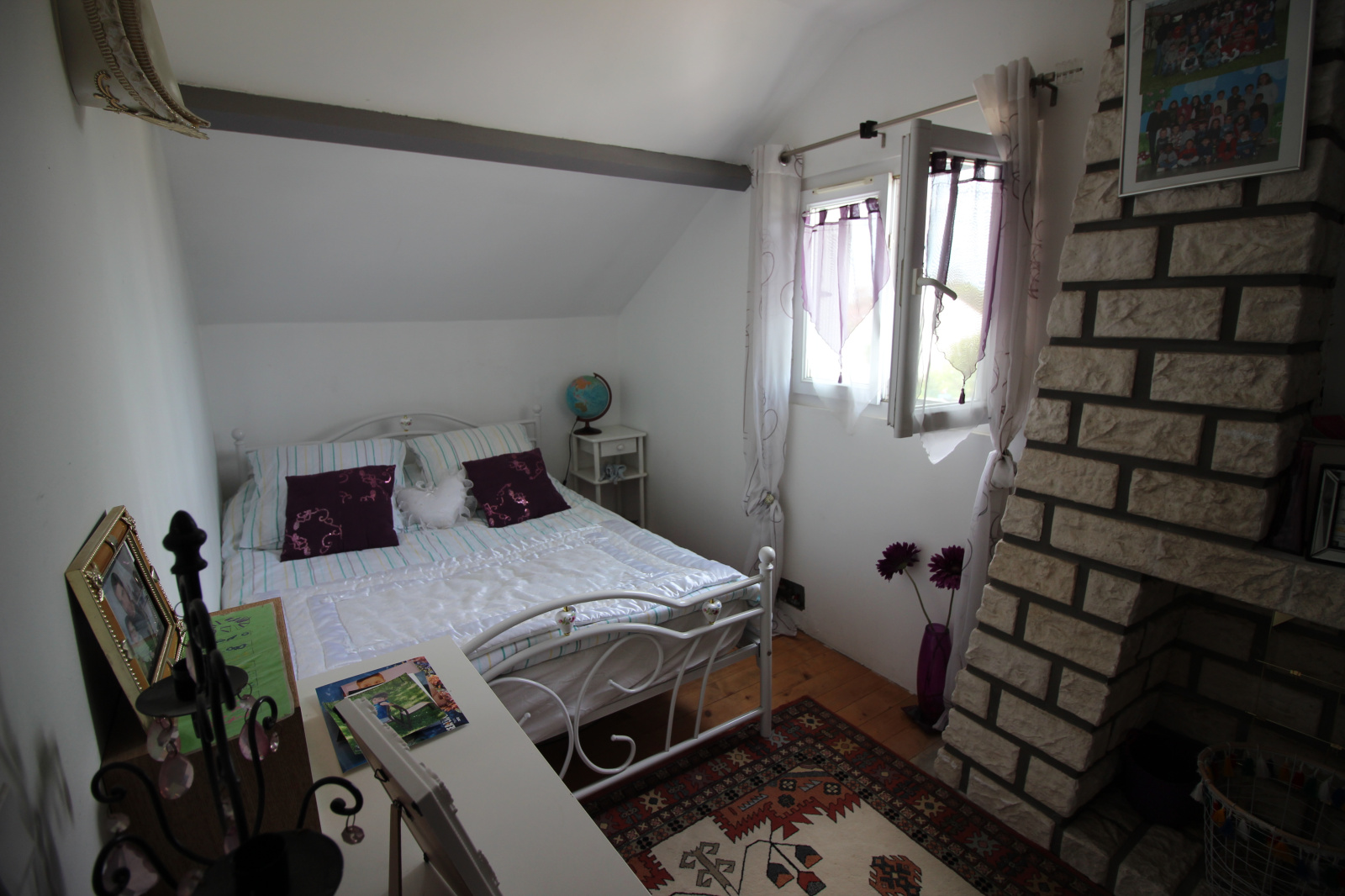 Séjour double avec cheminée, exposé sud, cuisine aménagée et équipée, trois chambres dont une en RDC sur élevé, chambre d'enfant ou bureau, salle d'eau, salle de bains, 2 WC.