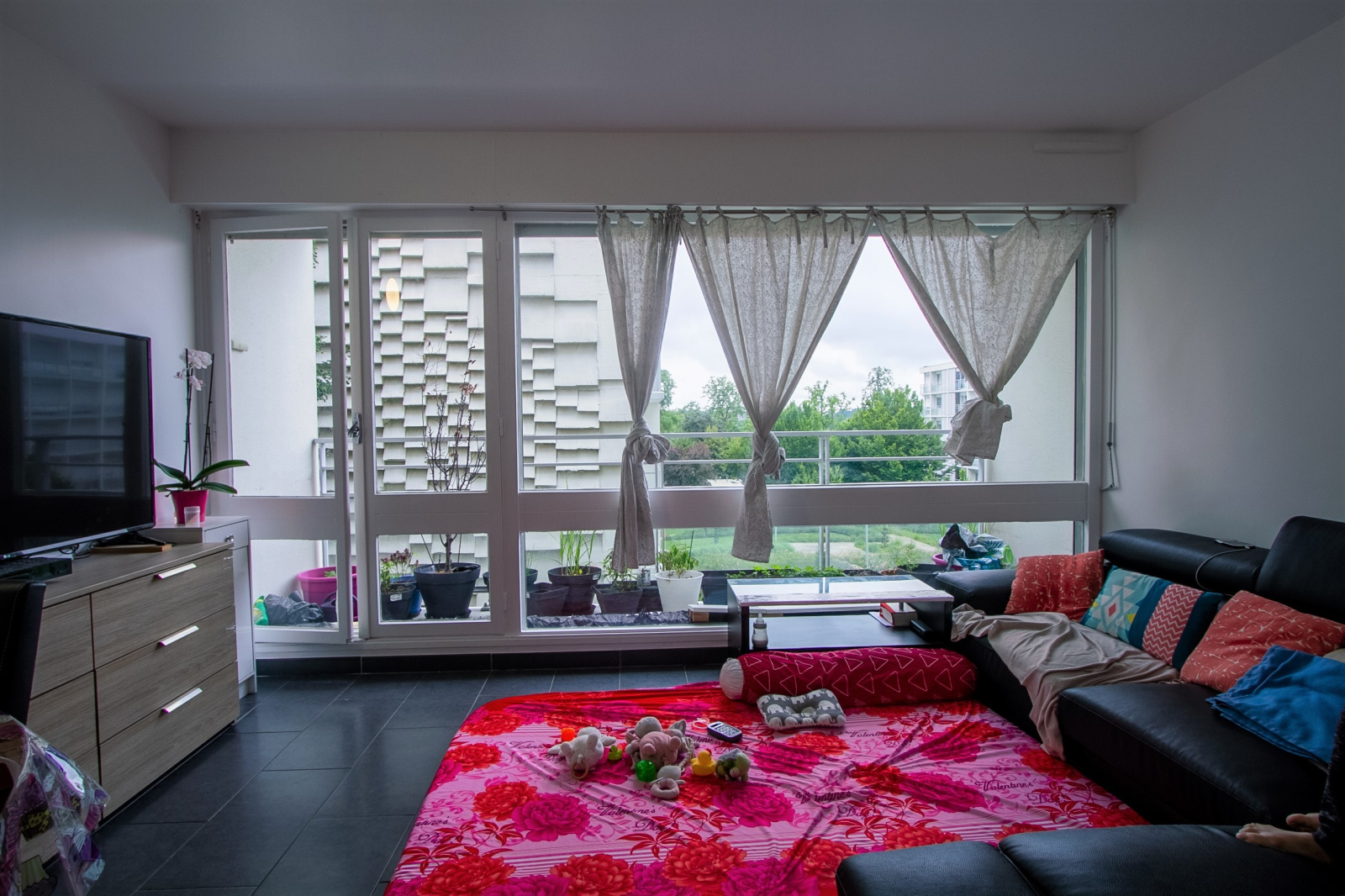 Séjour donnant sur un balcon exposé sud et sans vis à vis, 2 chambres, cuisine avec balcon, placards, salle de bains , wc, cave.