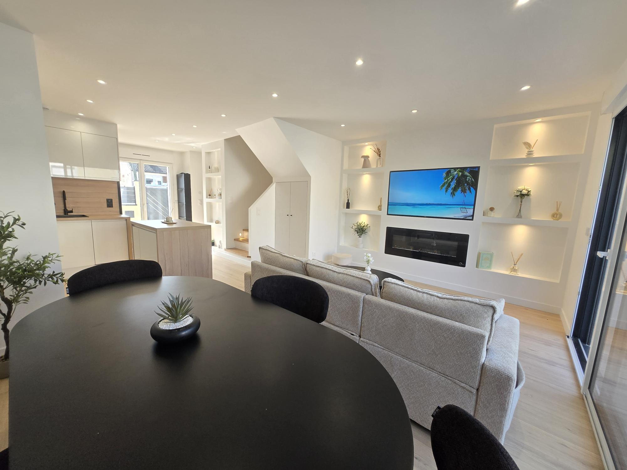 Boissy-Saint-Léger (94470)En plein coeur du très recherché quartier du Bois-Clary, à proximité immédiate des écoles et de la forêt, superbe maison de 2025 se composant de une entrée, cuisine US neuve équipée avec ilot central, cellier, pièce principale donnant sur terrasse et jardin, wc séparés, placard de rangement, jardinet à l'avant, au premier niveau, une salle de bain moderne, une grande chambre et une suite parentale avec salle d'eau privative et dressing, au second niveau, deux chambres et une salle d'eau moderne. Double vitrage avec volets roulants electrique partout - Pompe à chaleur - le tout en excellent état (neuf) et réalisé avec goût et materiaux de standing. A voir très vite !!!