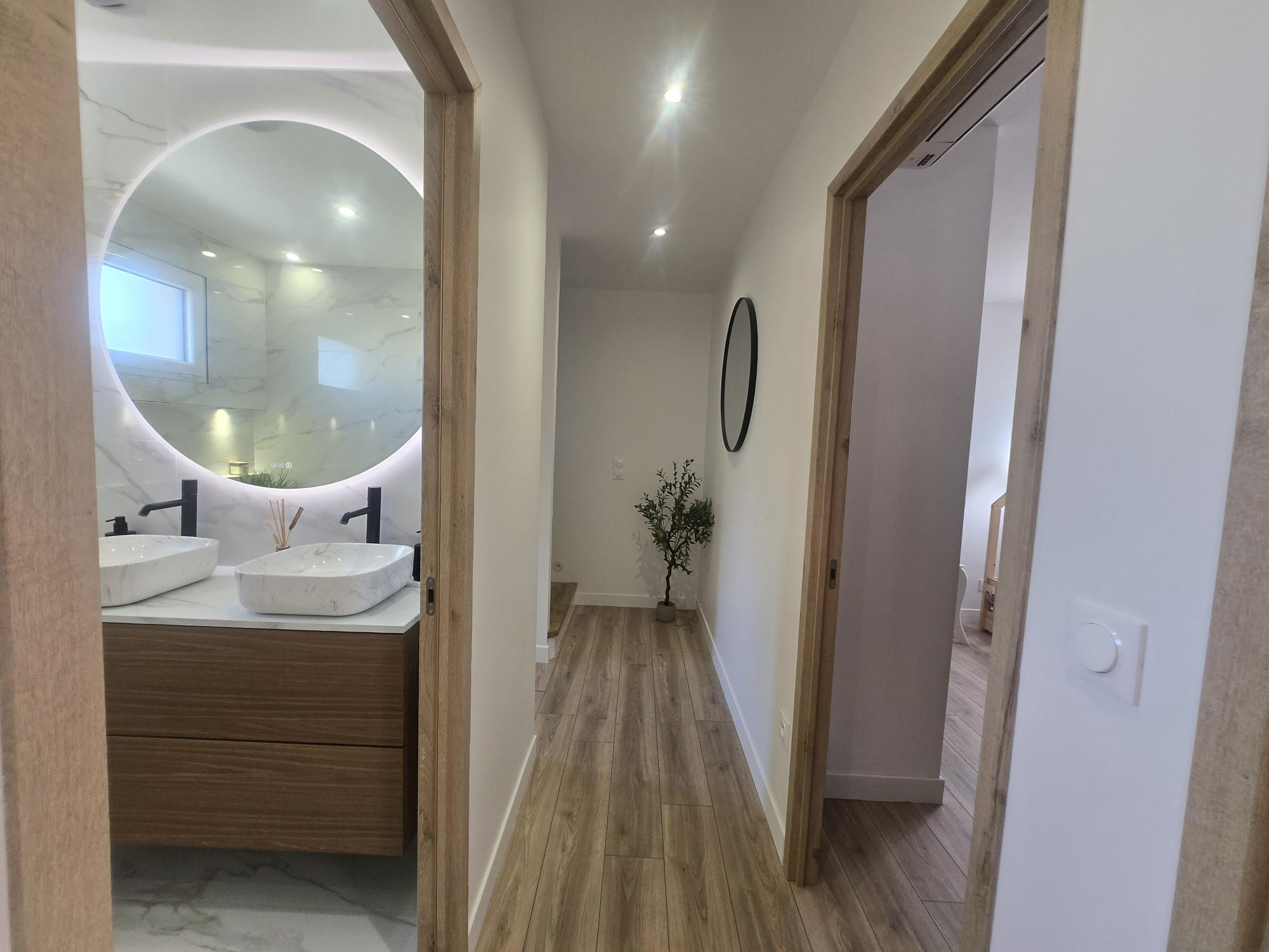 Boissy-Saint-Léger (94470)En plein coeur du quartier très recherché du "Bois-Clary", proche écoles et forêt, au calme d'un lot arrière, superbe maison "neuve" (2024) de 130m2 Habitables (155m2 utiles) se composant de : entrée avec grand placards, superbe pièce principale avec cuisine US équipée, salon/salle à mange avec accès terrasse et jardin par deux grandes baies vitrées, un spacieuse buanderie/cellier, une chambre. Au premier niveau : un palier desservant 3 belles chambres, une salle de bains moderne, wc. Au dernier niveau : une immense suite parentale avec dressing et salle d'eau privative. Bien execptionnel, tant par la qualité des prestations que par ses volumes et son emplacement. Le tout ayant été réalisé en 2024, donc sous garantie décennale, et bénéficiant des toutes dernière normes de construction et isolation. DPE : A !!! - Double vitrage partout (volets roulants electriques), pompe à chaleur, ballon thermodynamique. Matériaux et prestations haut de gamme, bien exceptionnel sur le secteur. A voir très vite !!!